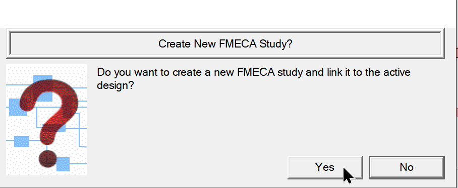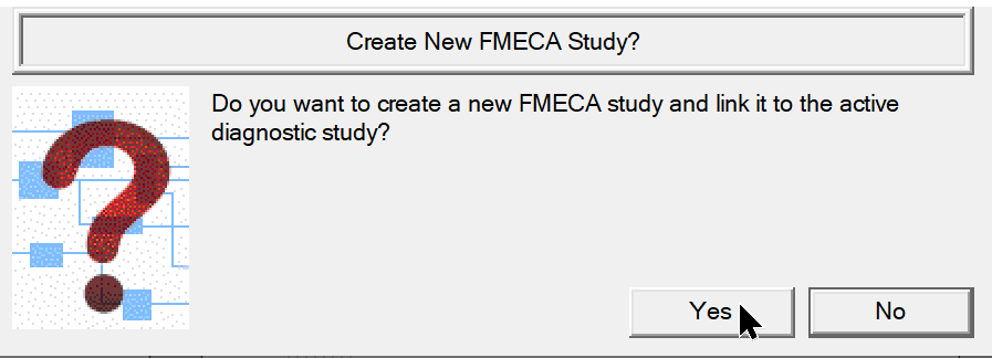 Select FMECA ICON from model design window shown below to open Window at right and choose "Yes"