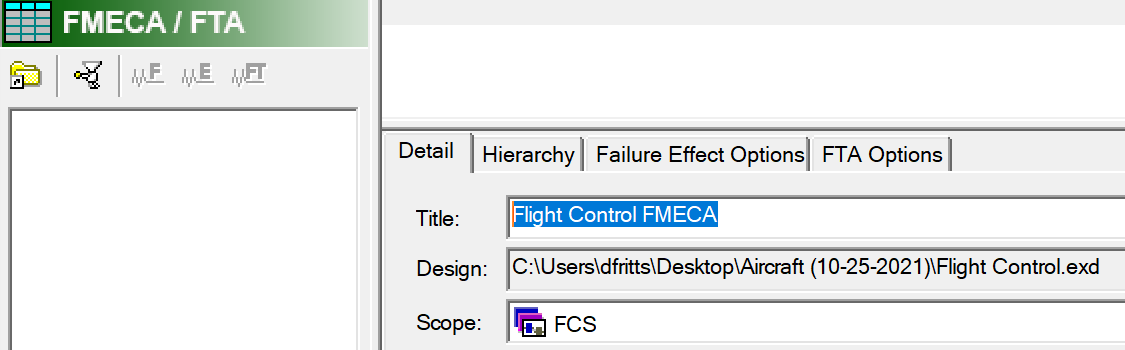 FMECA Context Panel "Details" Setup:
