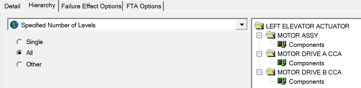 FMECA Context Panel "Hierarchy" Setup: