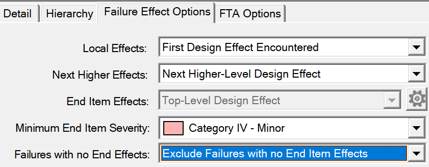 FMECA Context Panel "Failure Effect Options" Setup: